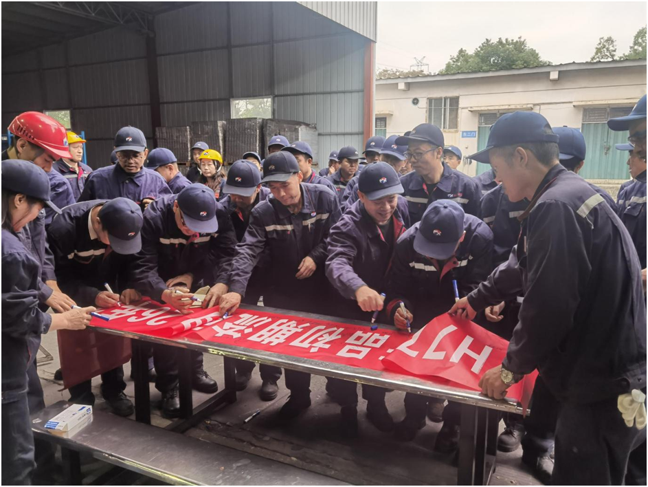 动员大会的高潮环节,冲压、焊接、生管、全检四个部门的全体员工,庄严宣誓。他们的声音洪亮而坚定,回荡在车间的每一个角落,不仅是对自己的承诺,更是对整个团队的鼓舞。宣誓完毕后,全体员工在印有 “岚图 H77 泰山车型初流管控责任状” 的横幅上郑重签下自己的名字。一笔一划,写下的是责任;一字一句,承载的是担当。